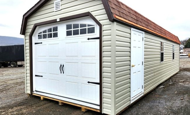 The Vinyl Dutch Barn Garage is our premier solution for homeowners seeking the absolute maximum storage space without any of the maintenance. Its signature gambrel roof creates a massive, loft-ready interior, while the high-quality vinyl siding ensures you'll never have to paint or stain it. If you need the most space with the least amount of work, this is the garage for you.