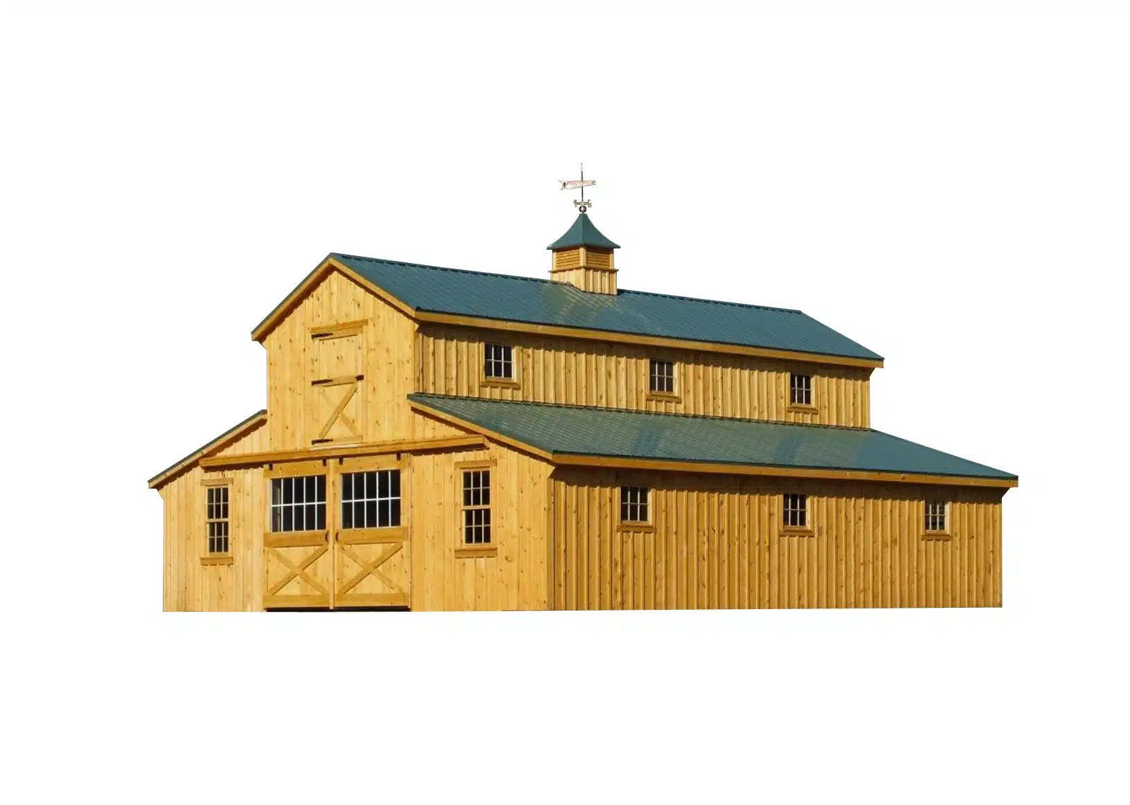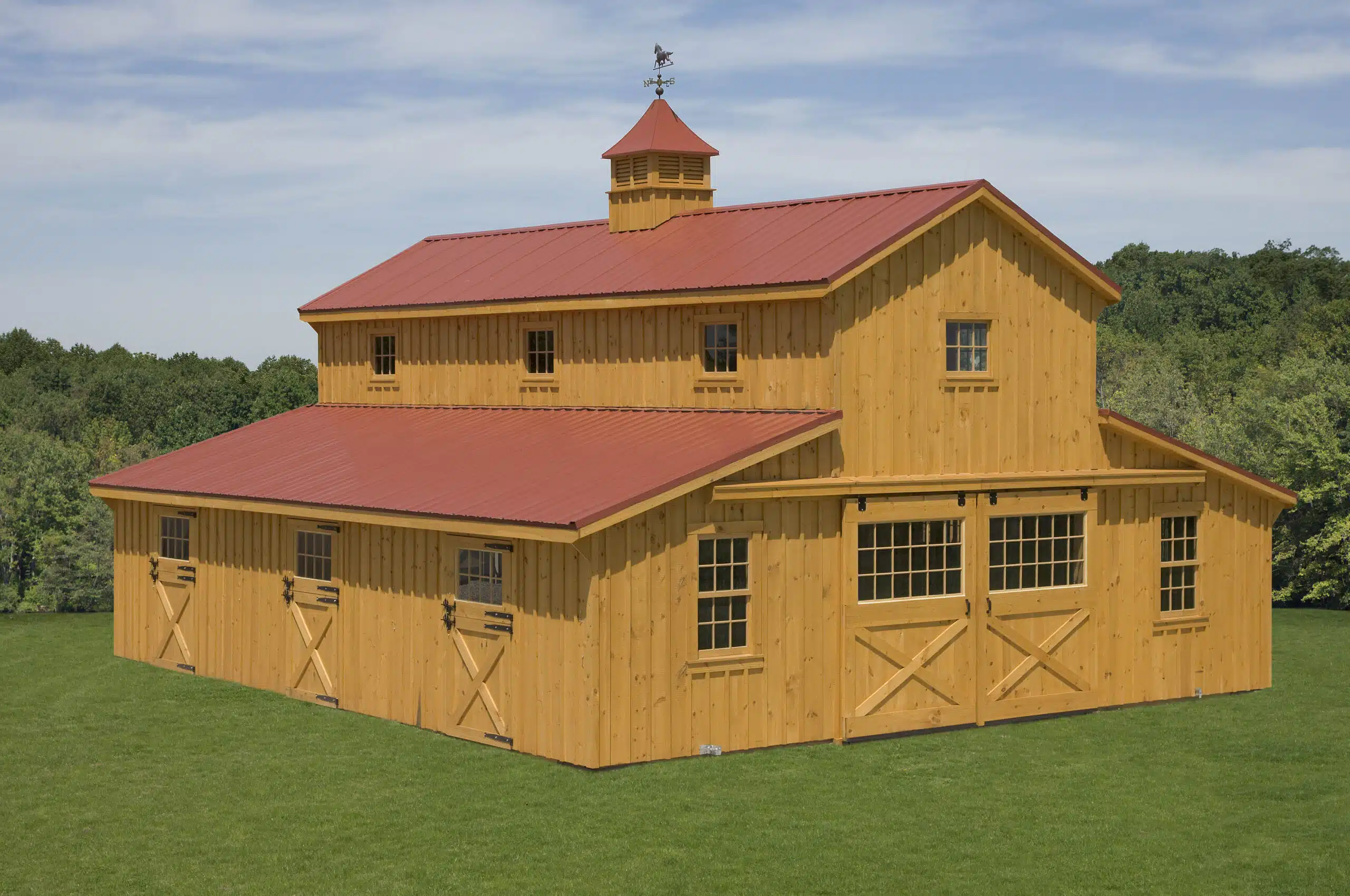 Horses lean, rub, and scratch against walls with 800+ lbs of lateral force. White pine framing with robust corner bracing prevents wall flex and structural damage.