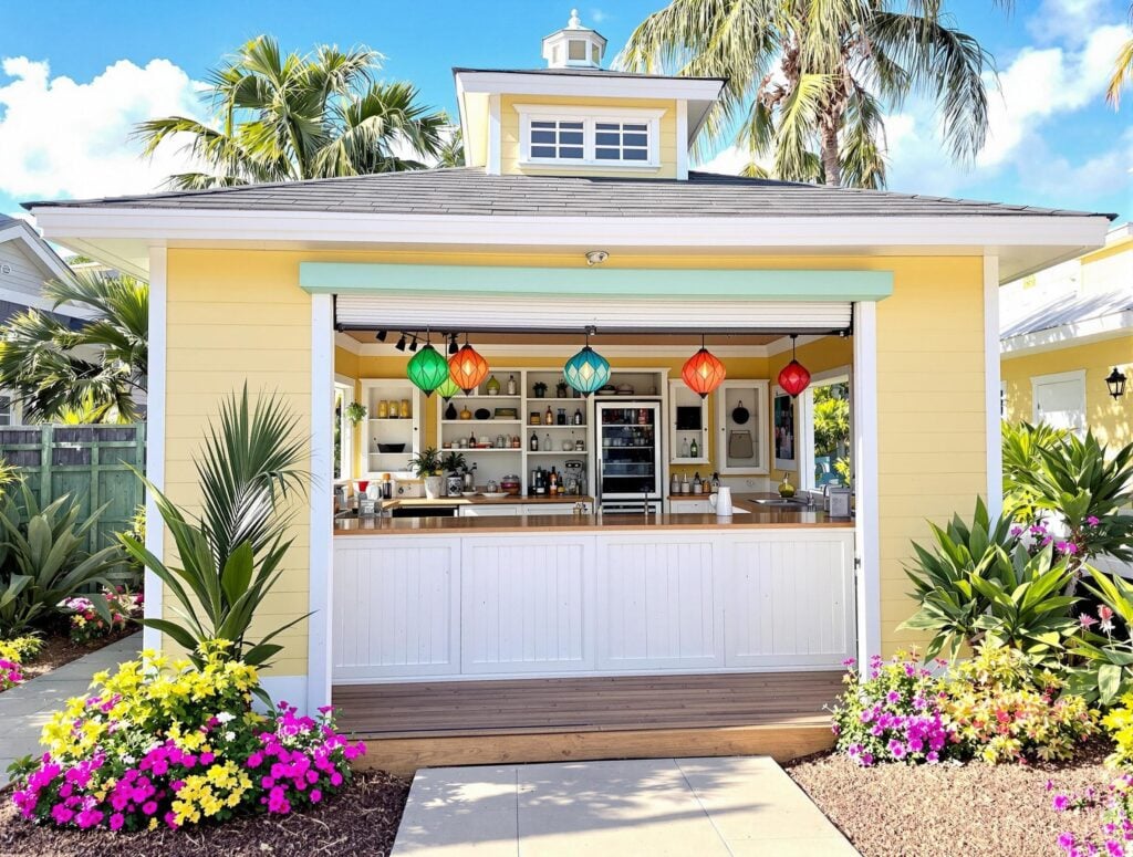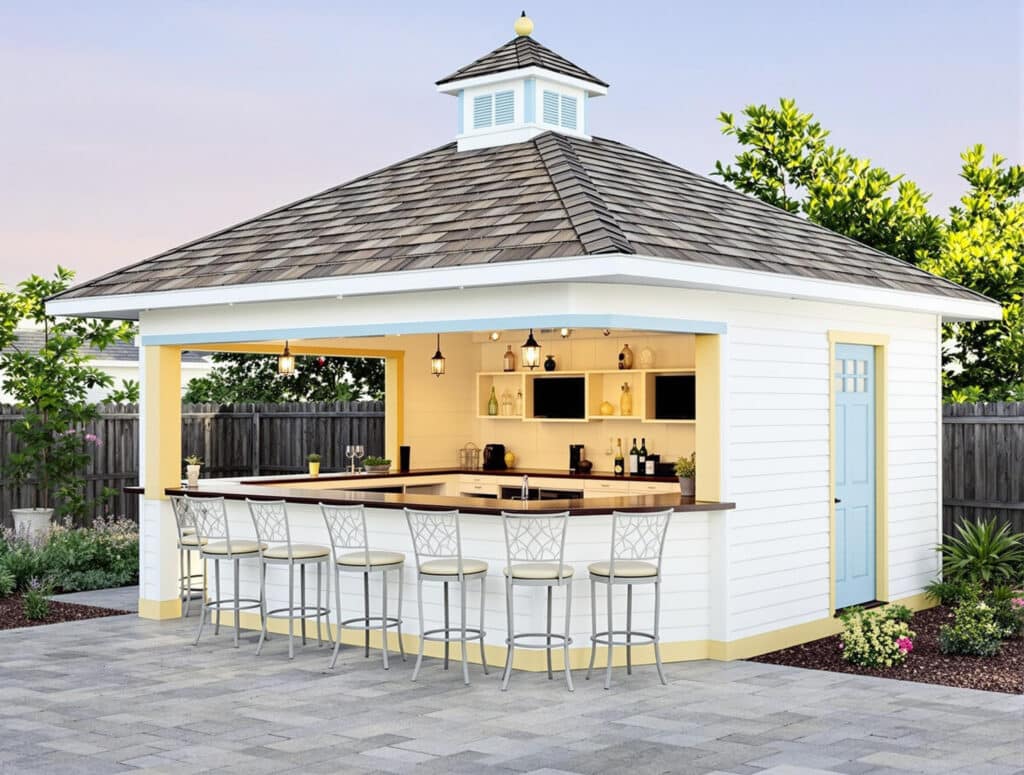 Tiki Bar with Storage: The ultimate hybrid solution. Get the party in the front and organized, secure storage in the back, combining function and fun in a single, efficient footprint.