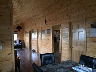 Pine Tongue-and-Groove Walls for a classic, rustic feel.
