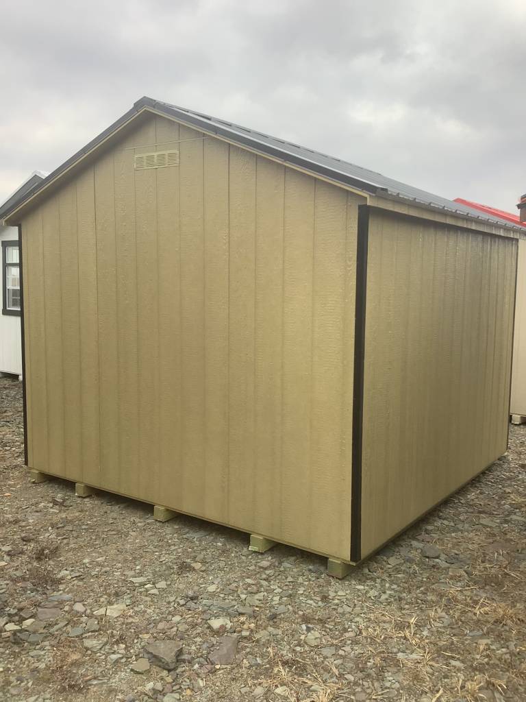 10×10 Smartside Exterior: Sage Green – Trim: Black – Black Shingled Roofing