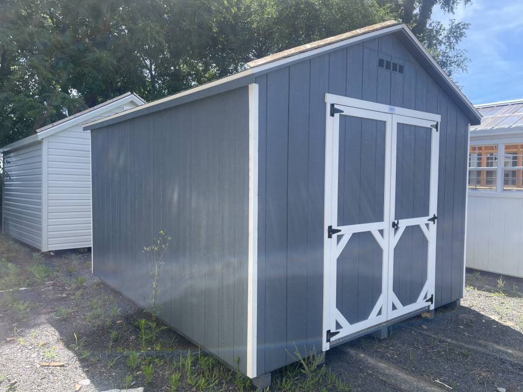 10×12 shed in stock 5′ double door end. 1 window back. Treadplate Starting At $3558