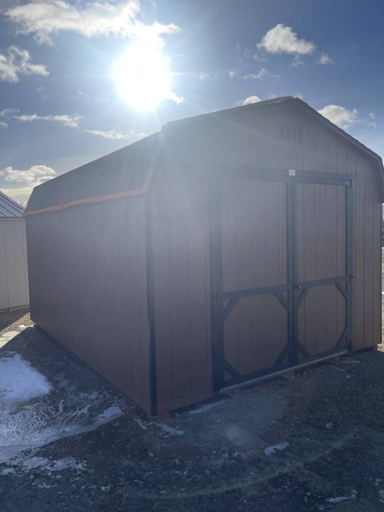 This robust storage shed features a striking chestnut brown exterior with elegant black trim and a black shingled roof. The stylish double doors provide both functionality and aesthetic appeal, making it a perfect addition to any property. Crafted with quality materials, this shed offers ample space for all your storage needs. With its durable construction and customizable options, it exemplifies the innovative and affordable solutions available at Wunderbar Structures. Designed to withstand the elements, this shed ensures long-lasting use and enhances the overall look of your outdoor space.