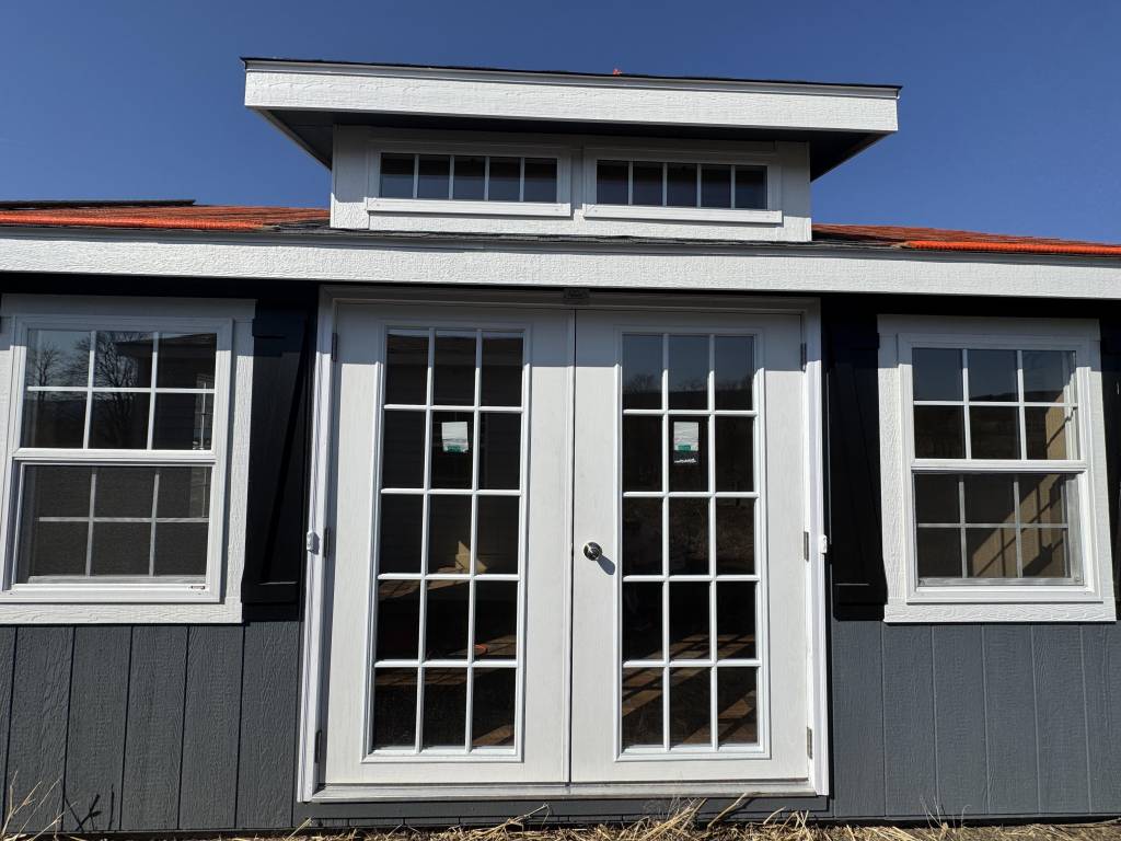 In-Stock shed 6′ double 15lite, 3-30×40 ins. windows, 2-30″ ins transom dormer, finished interior, panel box, 1 switch, 6 recessed lights Starting At Only $17756