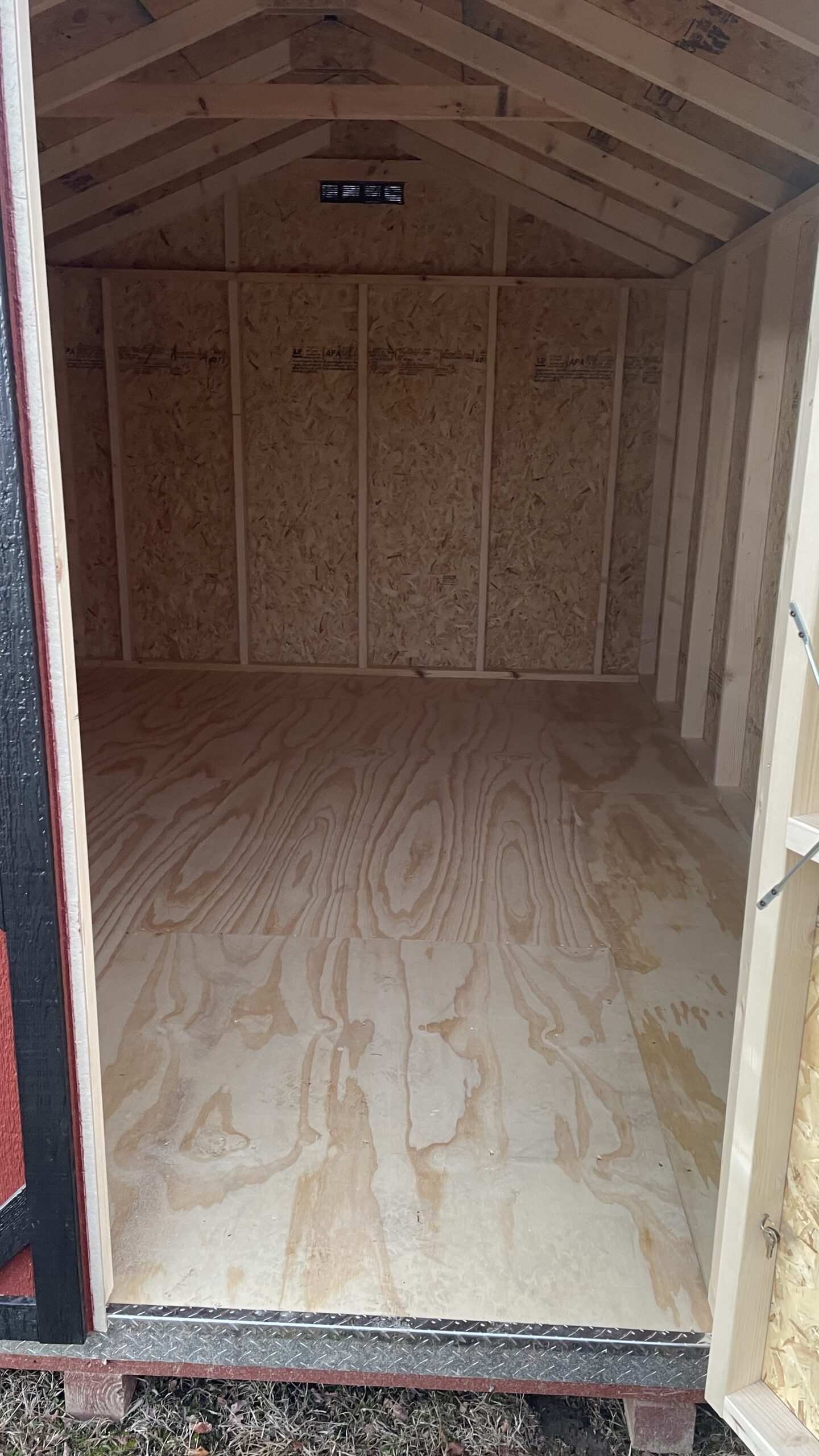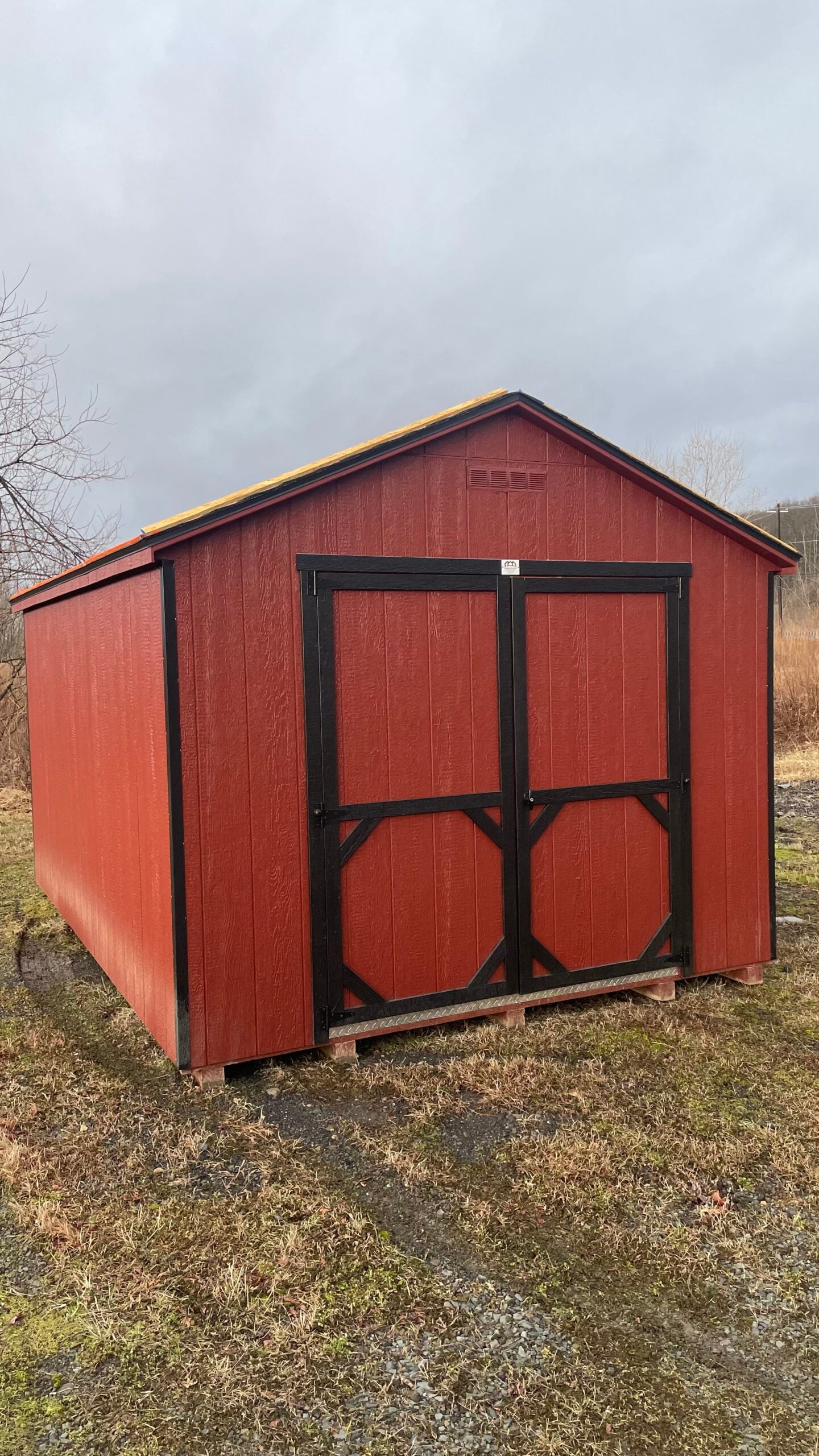This model is shown in Shed Red with black trim and a black roof, creating a bold and timeless color combination. The 6×6 double door allows for convenient access, making it easier to move larger items in and out of the building. Inside, the open layout provides flexible storage space that can be used for lawn equipment, gardening supplies, outdoor furniture, and more.