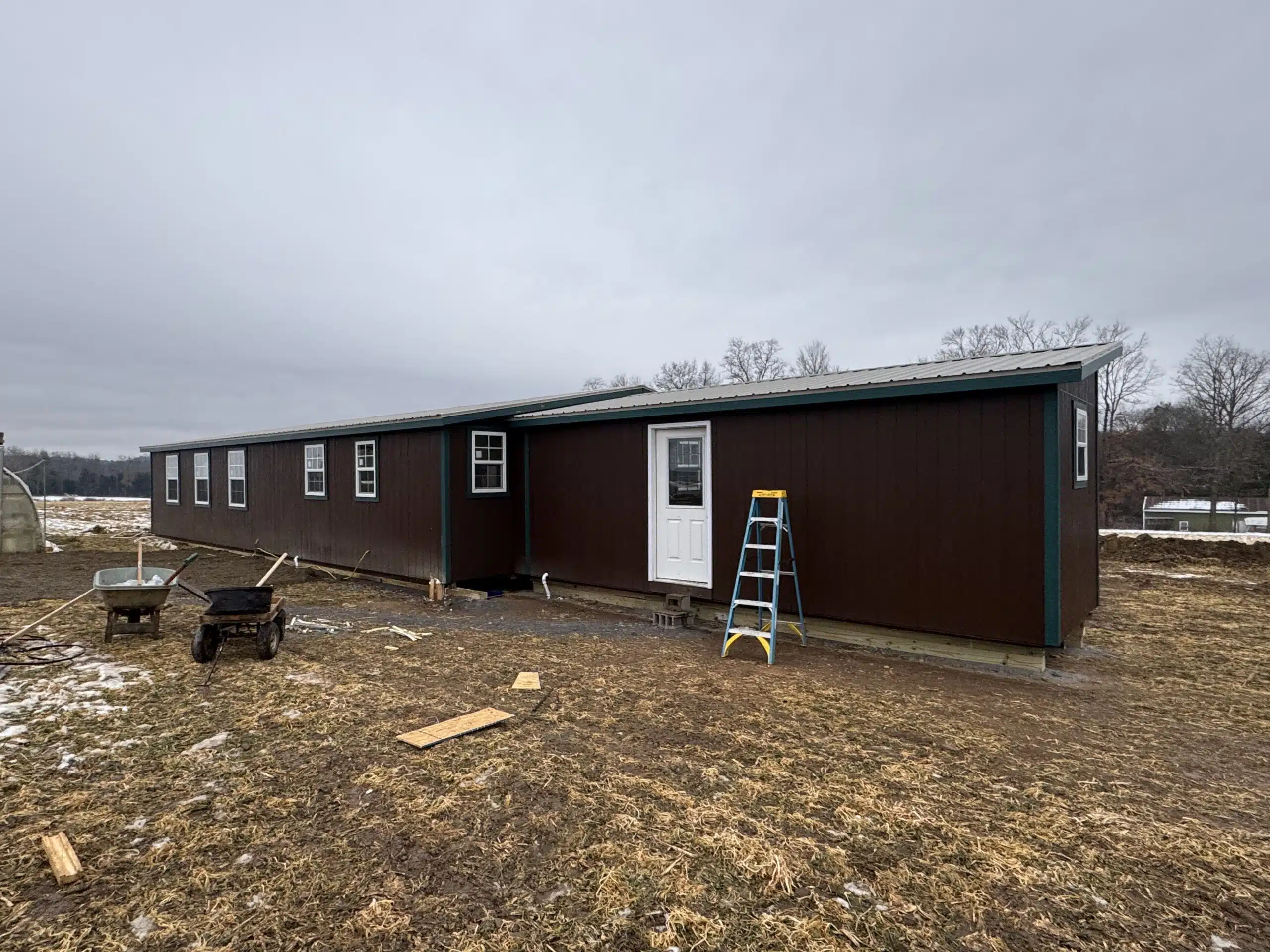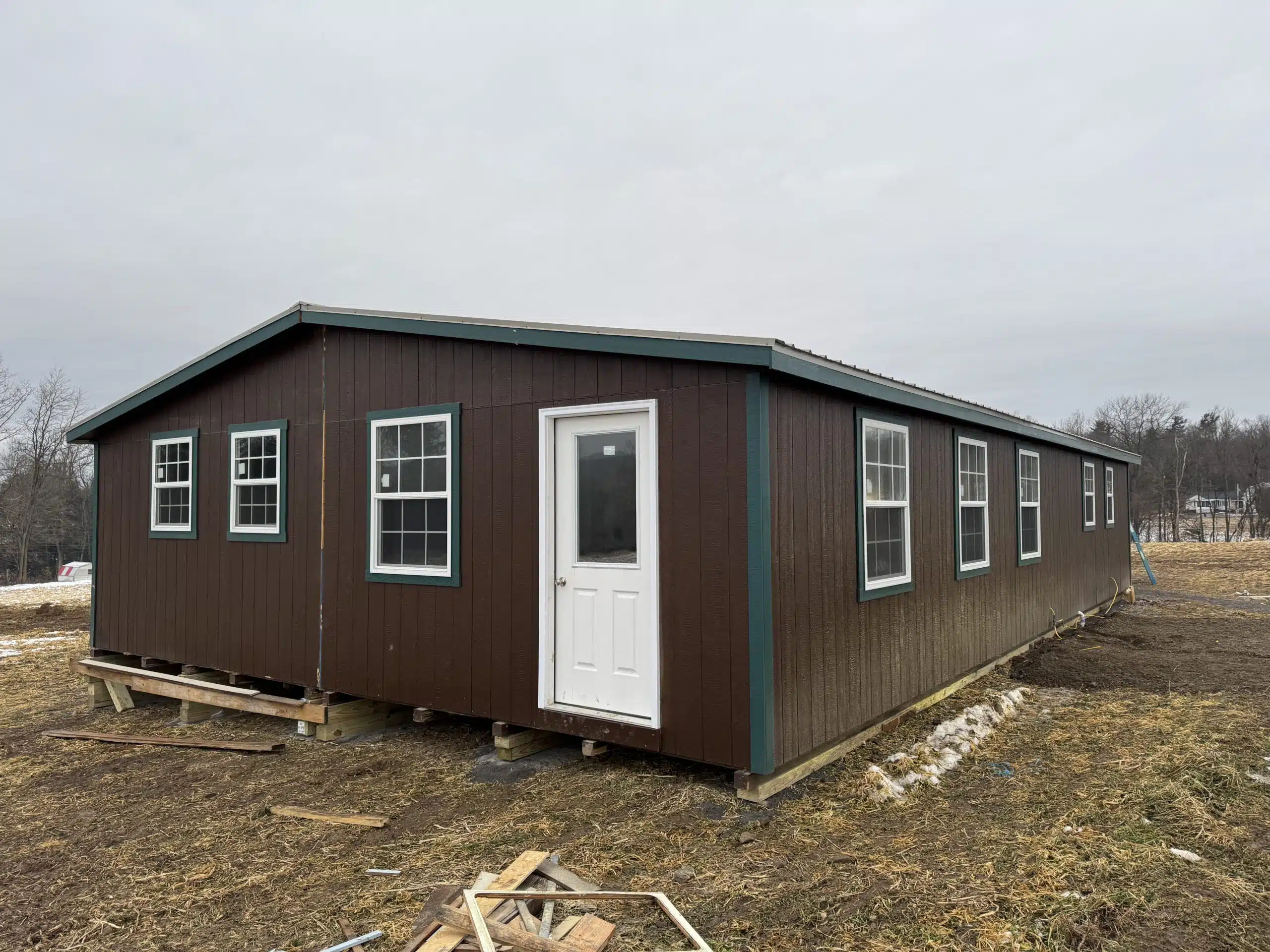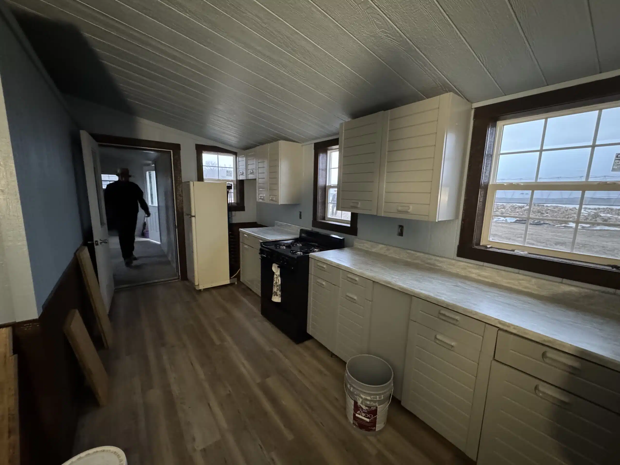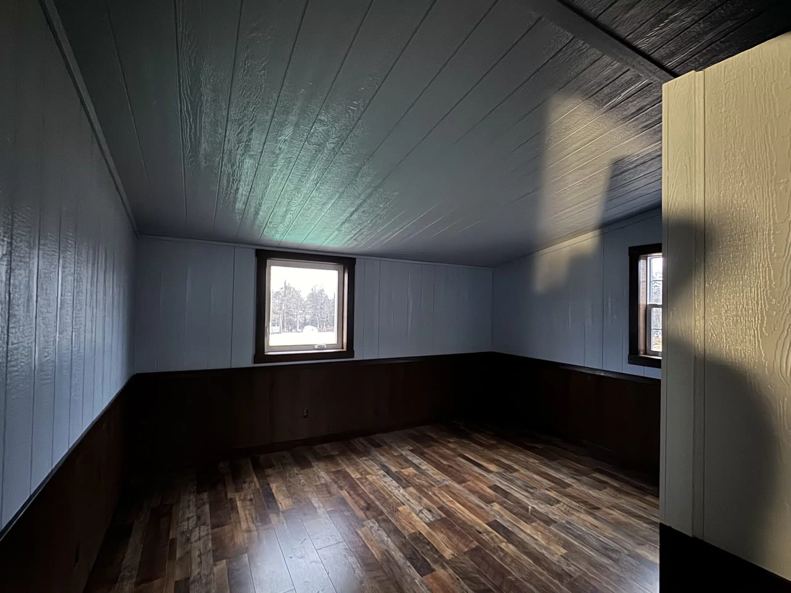 Inside, you’ll find a modern kitchen, a full bathroom, spacious bedrooms with generous closets, and a large mud room for gear and organization. The cabin is brightened by numerous insulated windows—including egress casement windows for safety—and features energy-efficient LED can lights, ceiling fans, and ample outlets throughout.