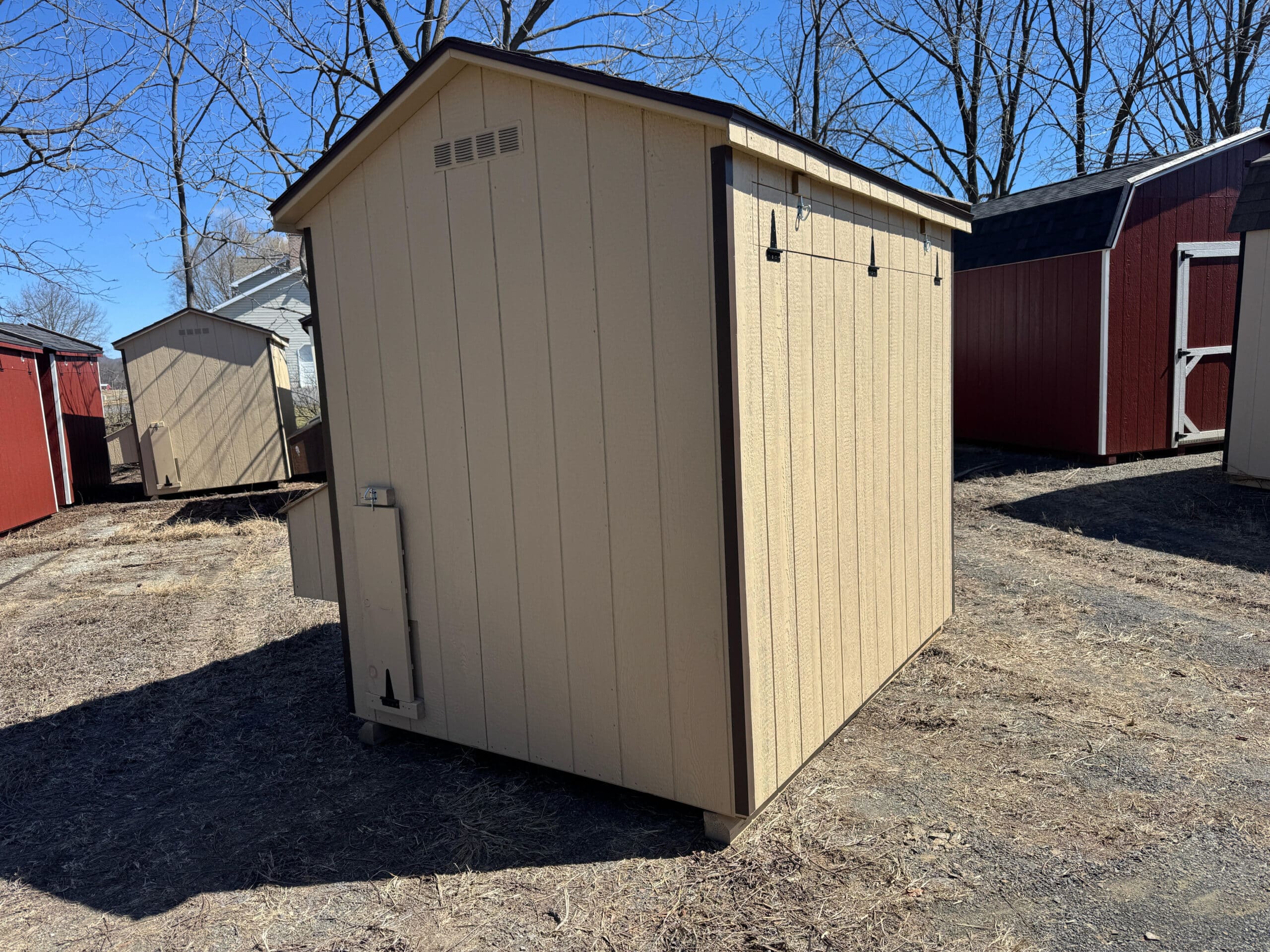 Keep your flock safe and happy with this 6×8 red and white chicken coop. Featuring a classic barn-inspired design, exterior nesting box, built-in roosts, shelves, and ample windows for light and ventilation, it’s the perfect backyard solution for fresh eggs and healthy hens.