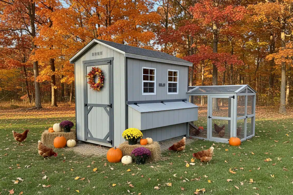 Give your backyard flock the perfect home with this 6×8 Chicken Coop in gap gray with dark gray trim and a charcoal gray roof. Designed for both style and function, this coop features a sturdy entry door, two double windows for light and airflow, and a large exterior nesting box for easy egg collection. Inside, you’ll find ample roosting space, nesting boxes, and a vented gable for fresh air. Built for durability and easy care, this coop is ideal for keeping your hens happy, healthy, and secure.