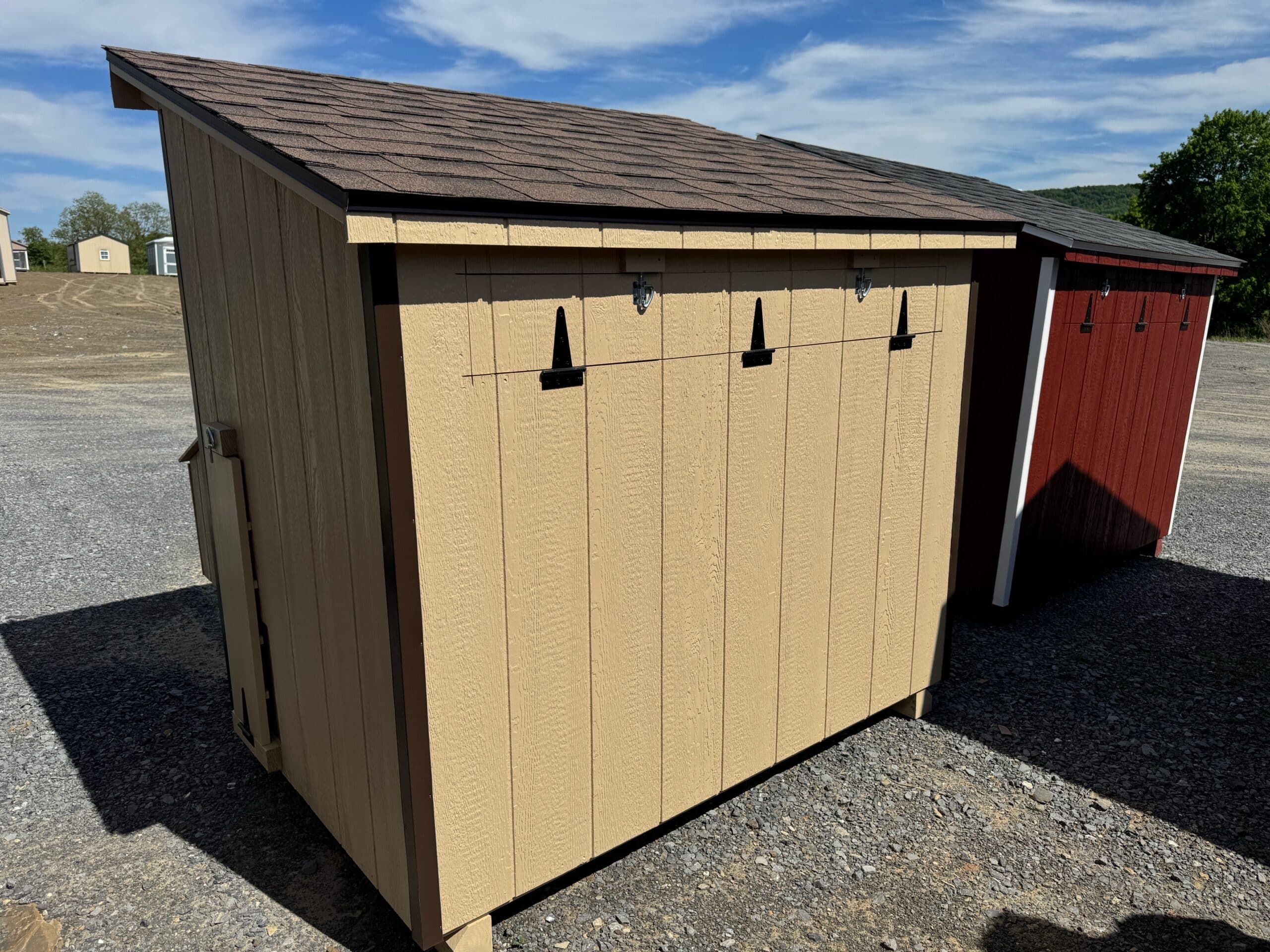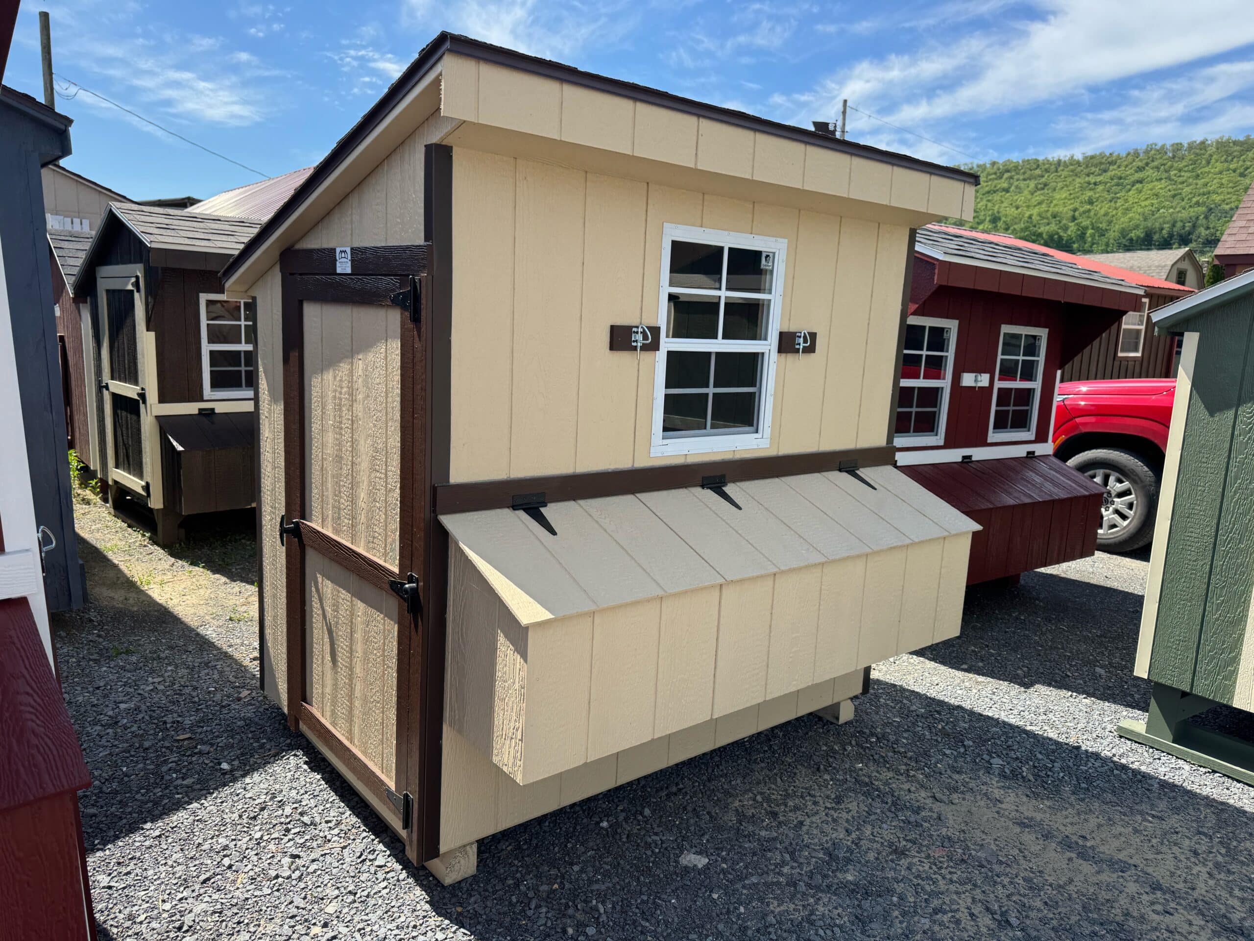 Give your hens a cozy and practical home with Model #0325, the 4×6 Leantoo Chicken Coop in Stoltzfus tan with brown trim and hardware. This compact coop features a secure entry door, a single window for natural light, and a large exterior nesting box for easy egg collection. Inside, you’ll find ample nesting and roosting space, all in a layout that’s easy to clean and maintain. Built for durability and flock comfort, this coop is ideal for small backyard flocks and fits beautifully in any setting.