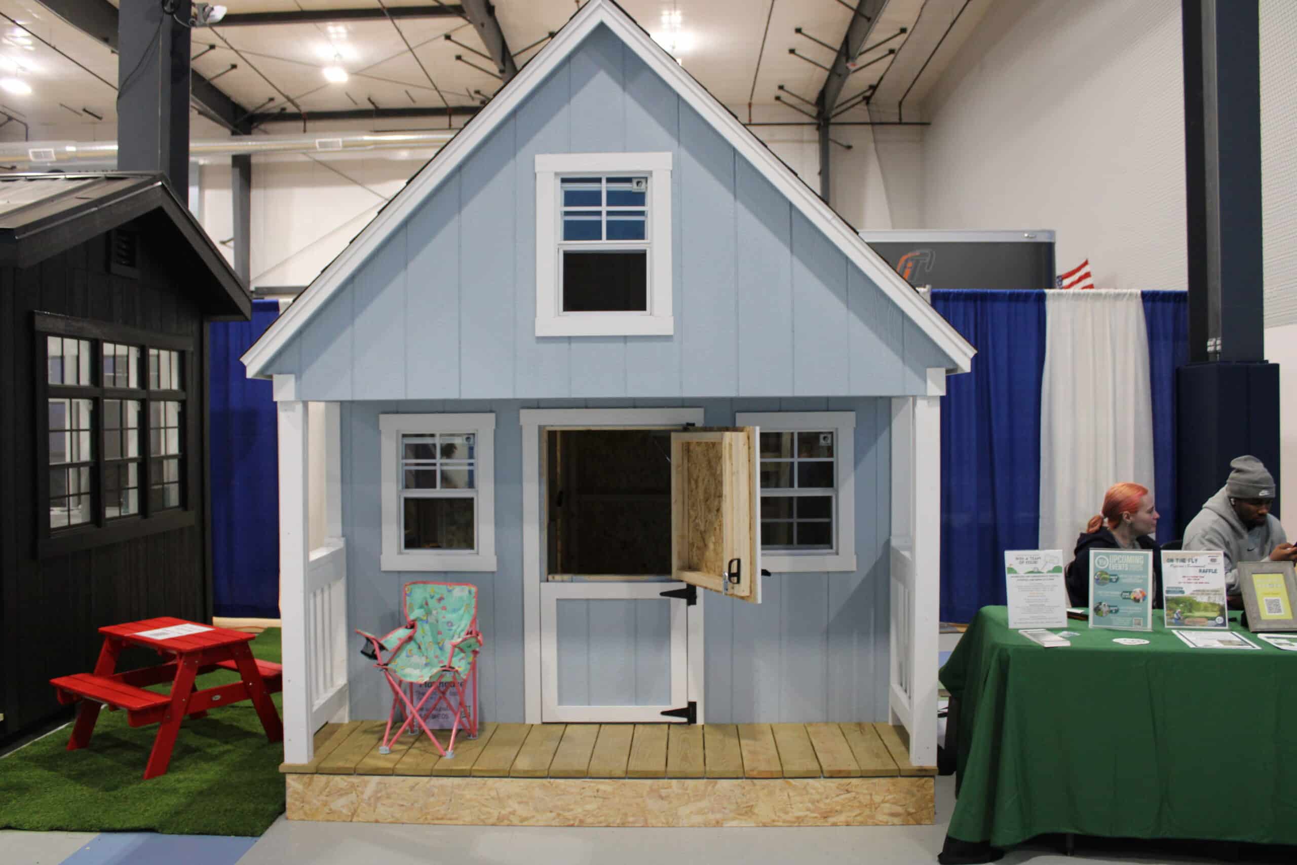 Create endless possibilities for play and creativity with the 8×8 Cabin Playhouse—thoughtfully designed to delight children and complement any backyard. Finished in a beautiful GP blue with classic white trim and bold black accents, this playhouse stands out for its style and durability. The spacious interior is easily accessed through a 3-foot single door or the charming child-sized door, making it inviting for both kids and adults.