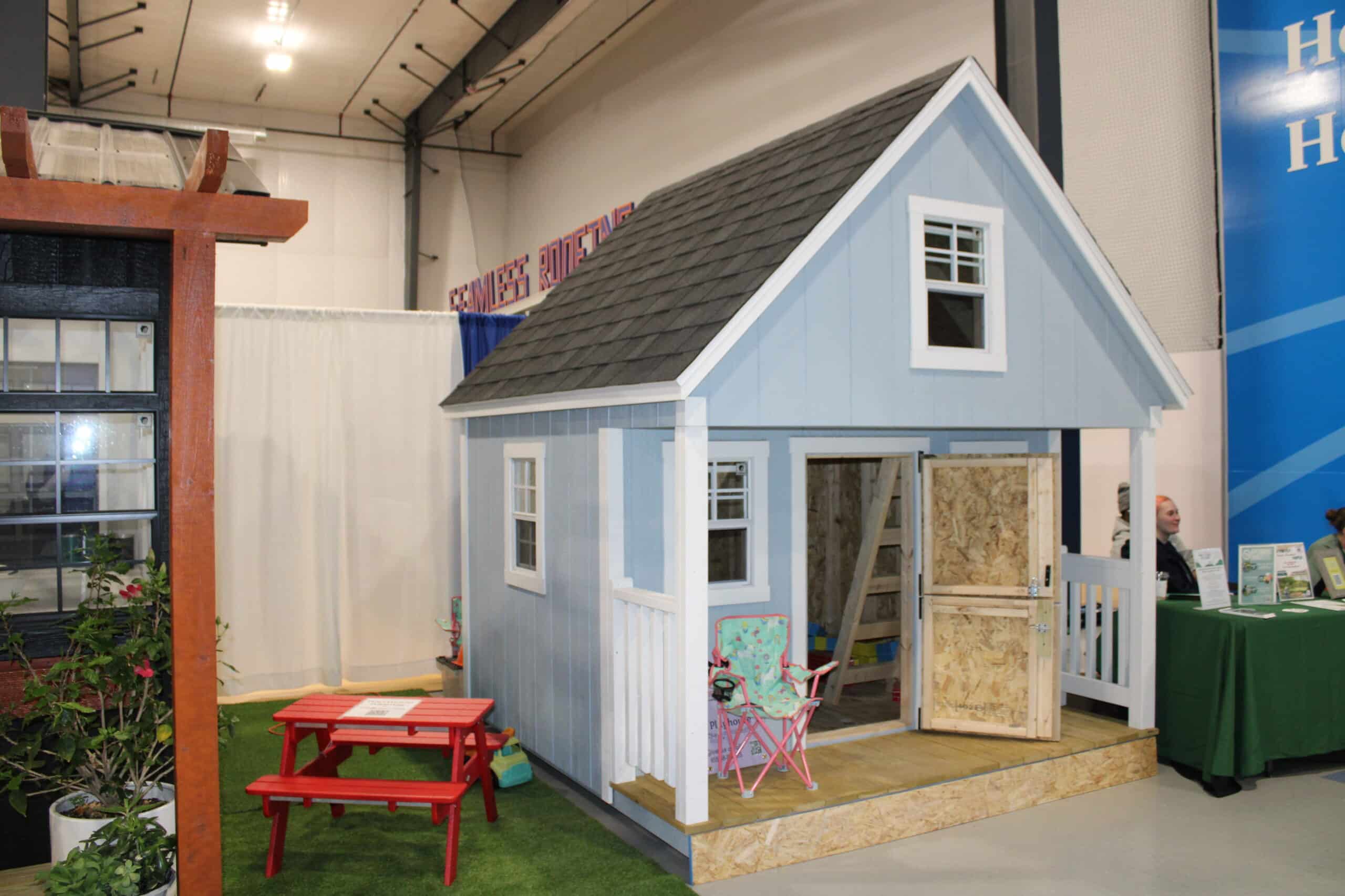 Five 14×21 windows fill the cabin with natural light, while the 2-foot covered porch provides a welcoming spot to relax or play outdoors. Inside, a built-in loft offers extra space for reading, games, or quiet time, transforming the playhouse into a true hideaway. Whether it’s used for imaginative adventures, sleepovers, or simply as a cozy backyard escape, this cabin playhouse is built to inspire fun and memories for years to come.