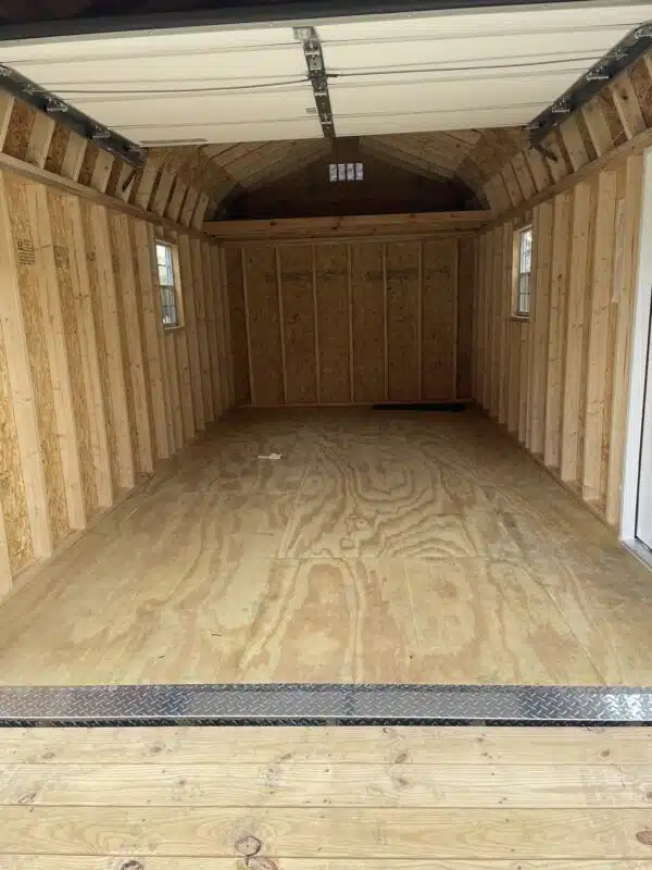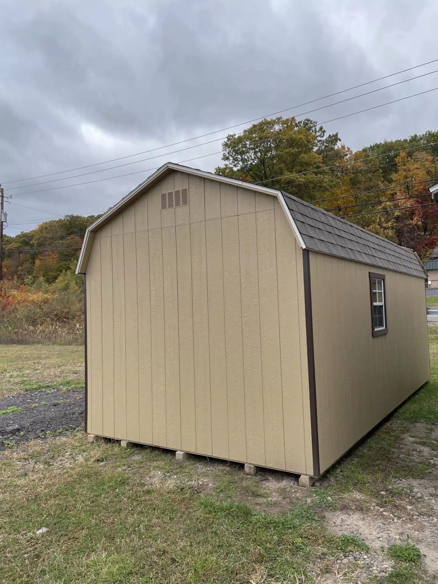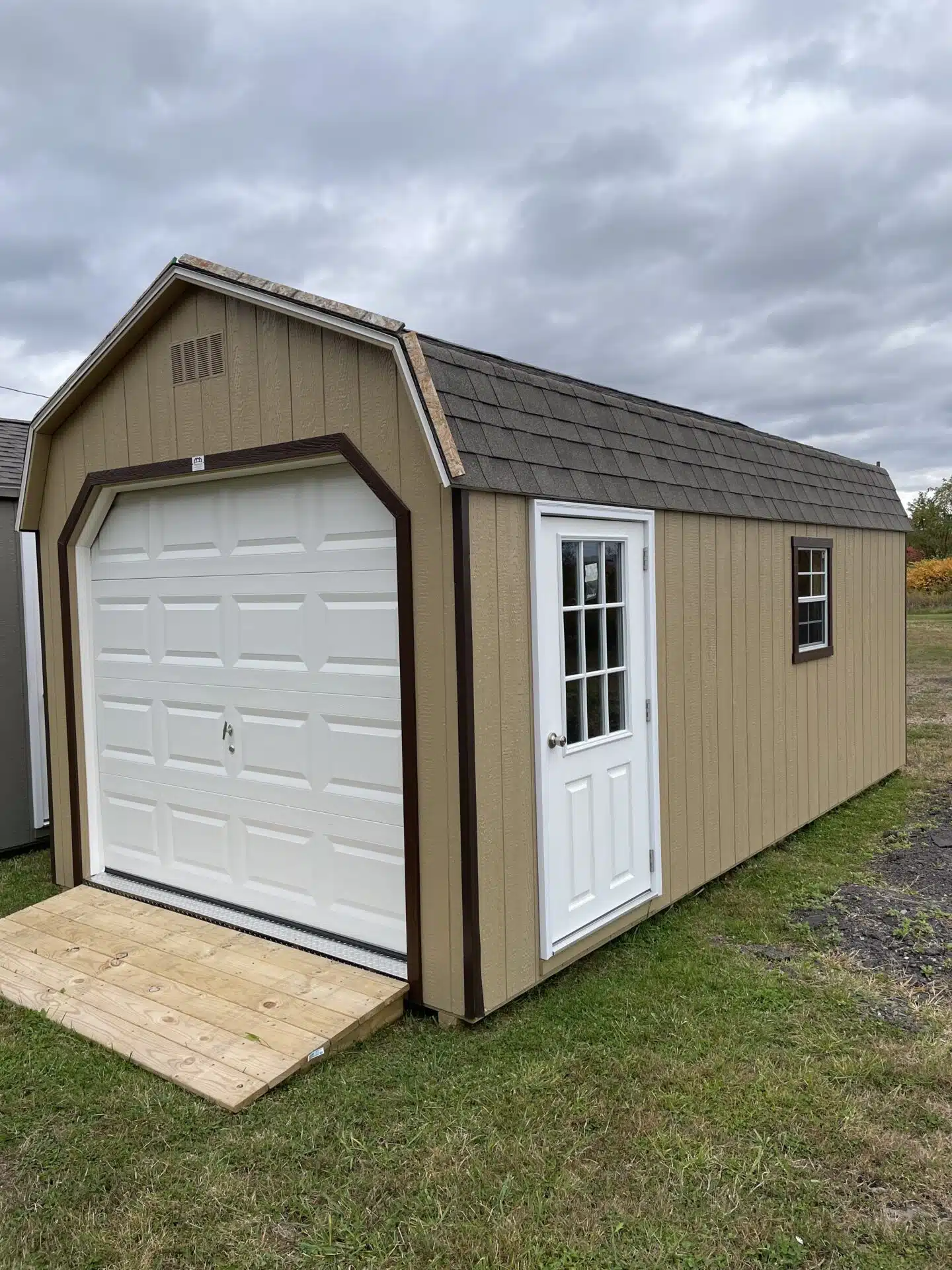 Upgrade your property with the 10×20 Smartside Barn Garage, finished in Basswood with classic brown trim and a weatherwood roof. This spacious garage features an 8×7 overhead garage door for easy vehicle access, a 9-lite walk-in entry door, and two 24×27 windows with trim for natural light. Inside, a 4-foot loft provides valuable overhead storage, while the 8-foot ramp ensures smooth entry for vehicles, mowers, or equipment. Ridge and end vents offer excellent airflow, and the unfinished interior allows for flexible use as a workshop, secure parking, or organized storage. Built with durable Smartside siding, this barn garage combines classic style, strength, and versatility for all your backyard needs.