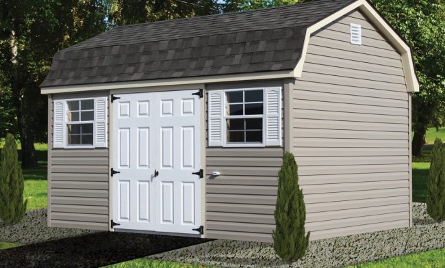 Why choose between cavernous storage and elegant design when you can have both? The Vinyl Dutch Barn combines the two features that practical homeowners value most: the immense, loft-ready storage capacity of our signature gambrel roof and the "set it and forget it" convenience of maintenance-free vinyl siding. It’s the ultimate solution for storing everything you own in a durable, attractive shed that you’ll never have to paint.